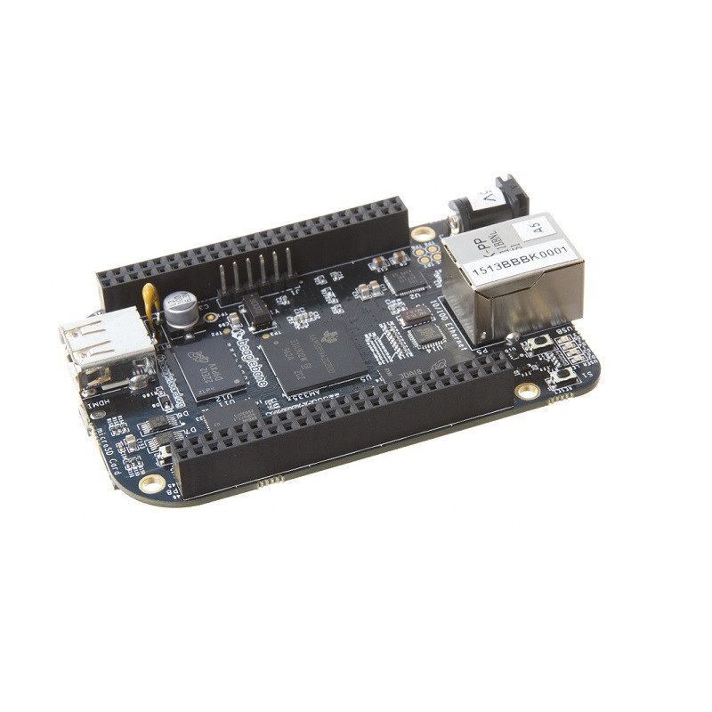 BeagleBone Black Rev C packs a 1 GHz ARM Cortex‑A8 (TI Sitara AM3358), 512 MB DDR3 RAM, and 4 GB eMMC flash into a compact, low-cost single-board computer with onboard micro-HDMI, USB, Ethernet,