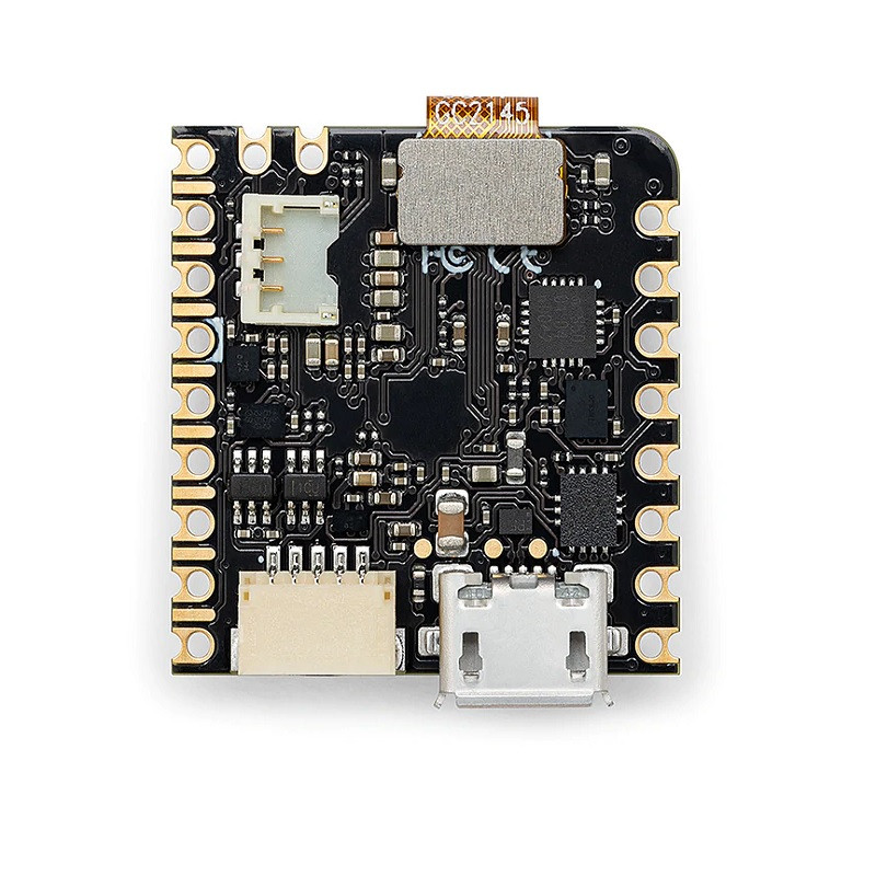 Arduino Nicla Vision (ABX00051) is a tiny vision‑AI board measuring just 22.86 × 22.86 mm, powered by a dual‑core STM32H747 (Cortex‑M7 @480 MHz + M4 @240 MHz), integrating a 2 MP color camera, 6‑axis IMU, distance sensor, microphone, Wi‑Fi/Bluetooth LE, and battery support